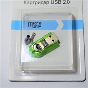 (1011282) Картридер Oxion зеленый, поддержка форматов microSD до 32 Гб USB 2.0 (OCR012GR) (40)