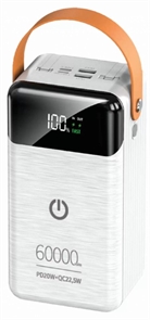 (1038475) Perfeo Powerbank PRODIGE 60000 mAh/LED/PD + QC 3.0/Type-C/Lightning/2 USB/Выход: 5A, max 22.5W/White (PF_C3698)