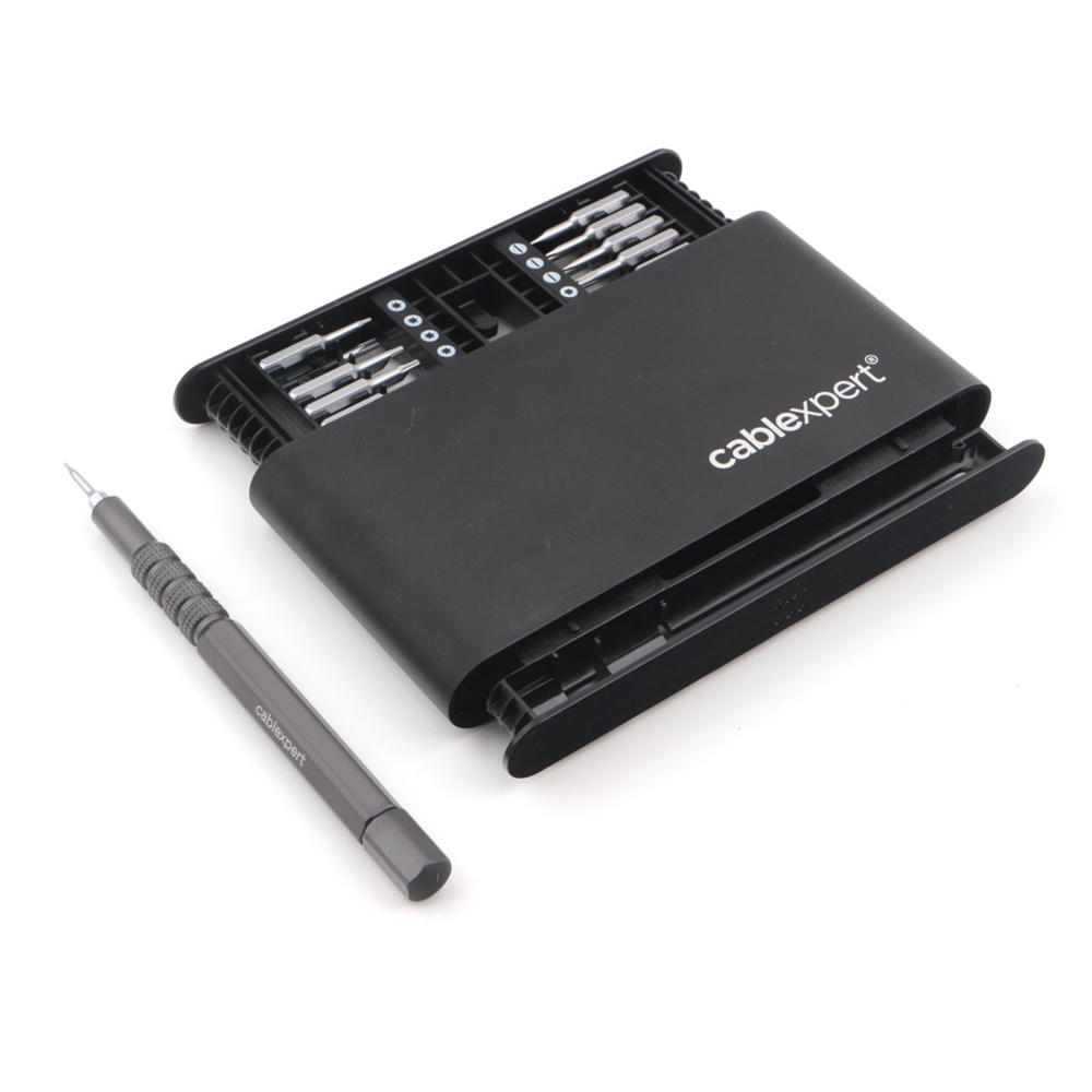 1025192 Отвертка с набором бит Cablexpert 21 предмет, сталь S2, для точных работ, алюминиевый кейс, коробка