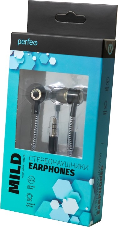 (1029951) Perfeo наушники внутриканальные MILD черные черно-серый тканевый провод [PF_A4482] купить в Балашихе.