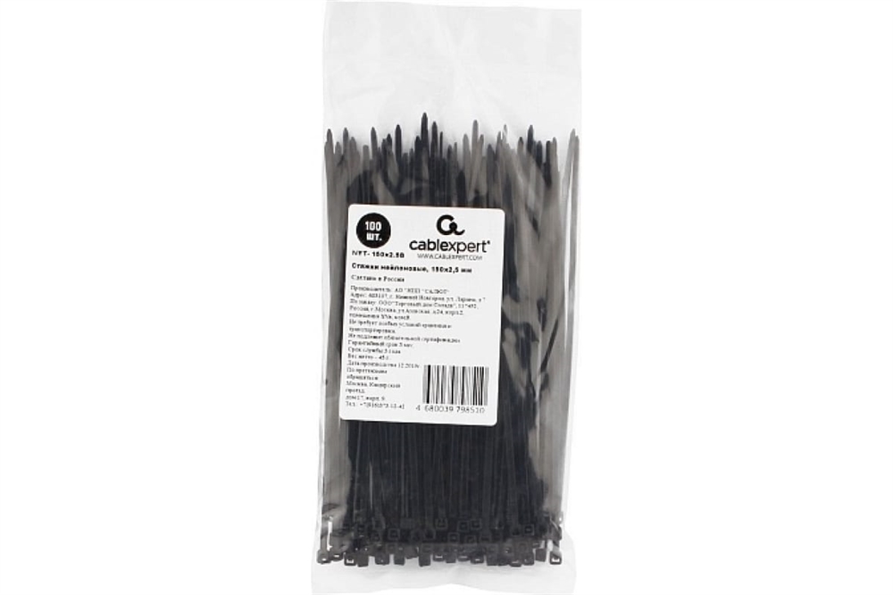 (1037679) Стяжки Cablexpert пластиковые 150 мм х 2.5 мм, чёрные (100 шт.) купить в Балашихе.