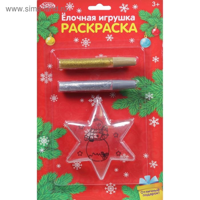 Новогоднее елочное украшение под раскраску "Звезда 6-ти конечная со Снеговиком и блестками" + глитте купить в Балашихе
